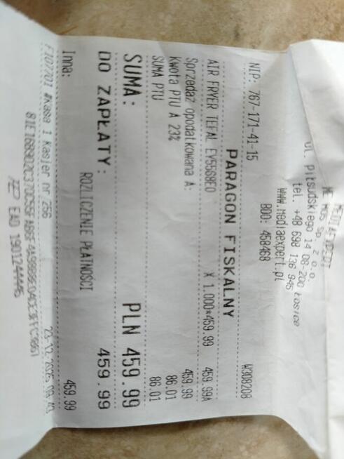 Sprzedam airfryer nowy, nieużywany, zakupiony w grudniu 2025, posiadam paragon jako dowód zakupu kosztował 460, możliwosc ...