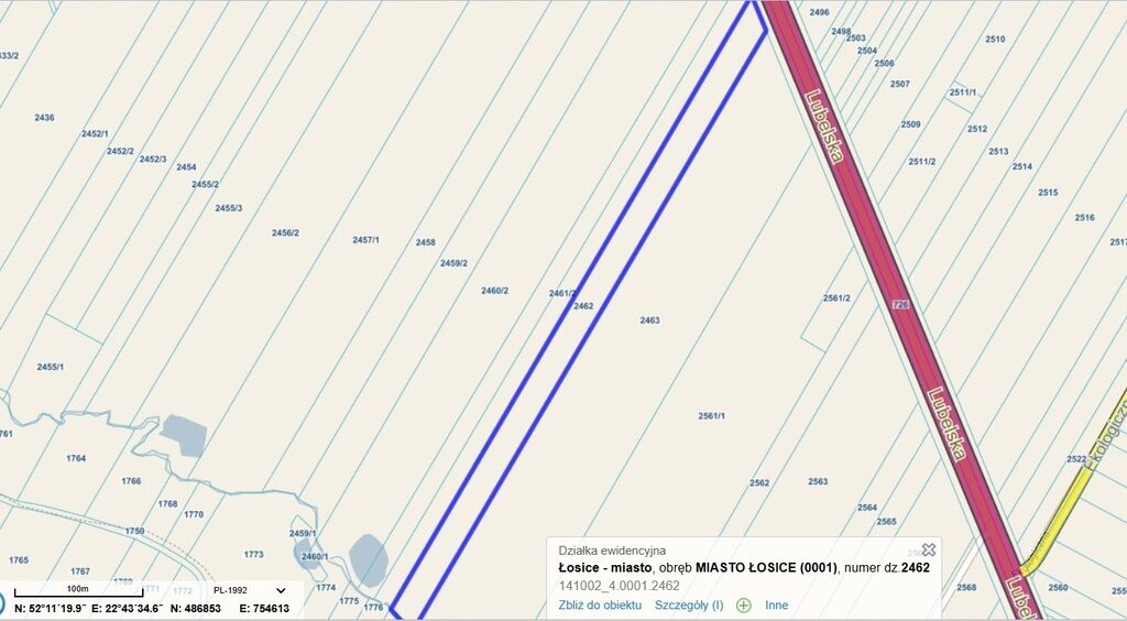 (1,3384 ha), położoną w Łosicach, przy głównej ulicy Lubelskiej