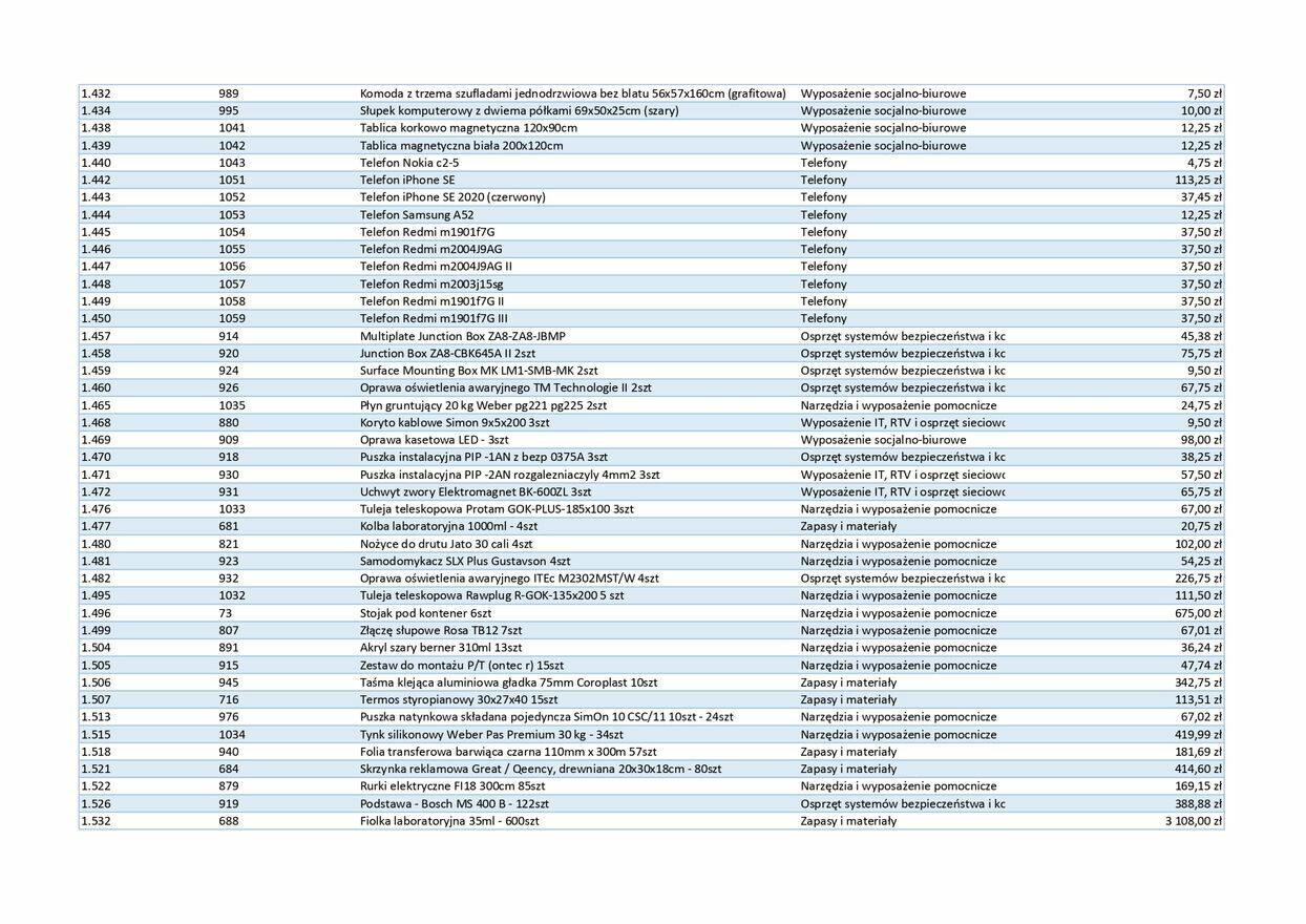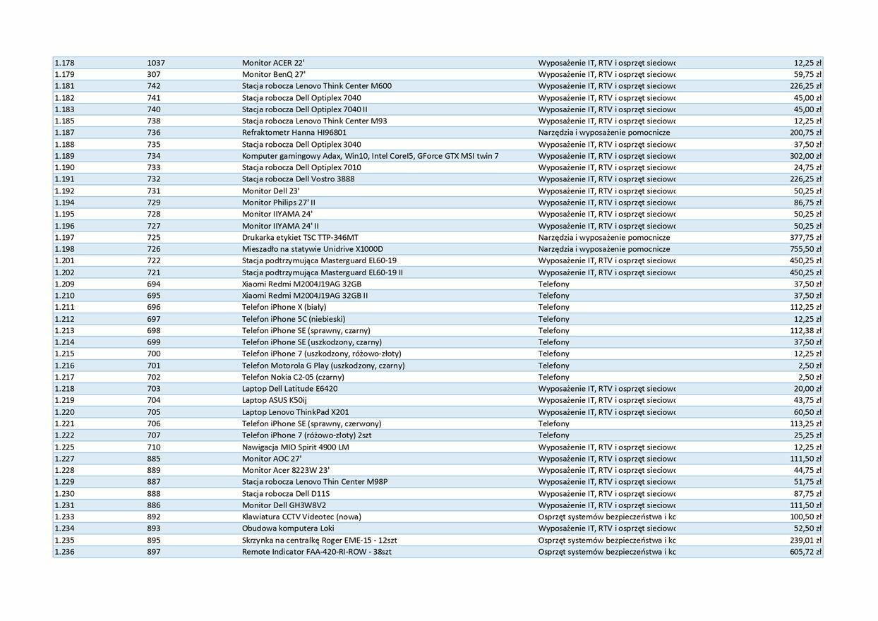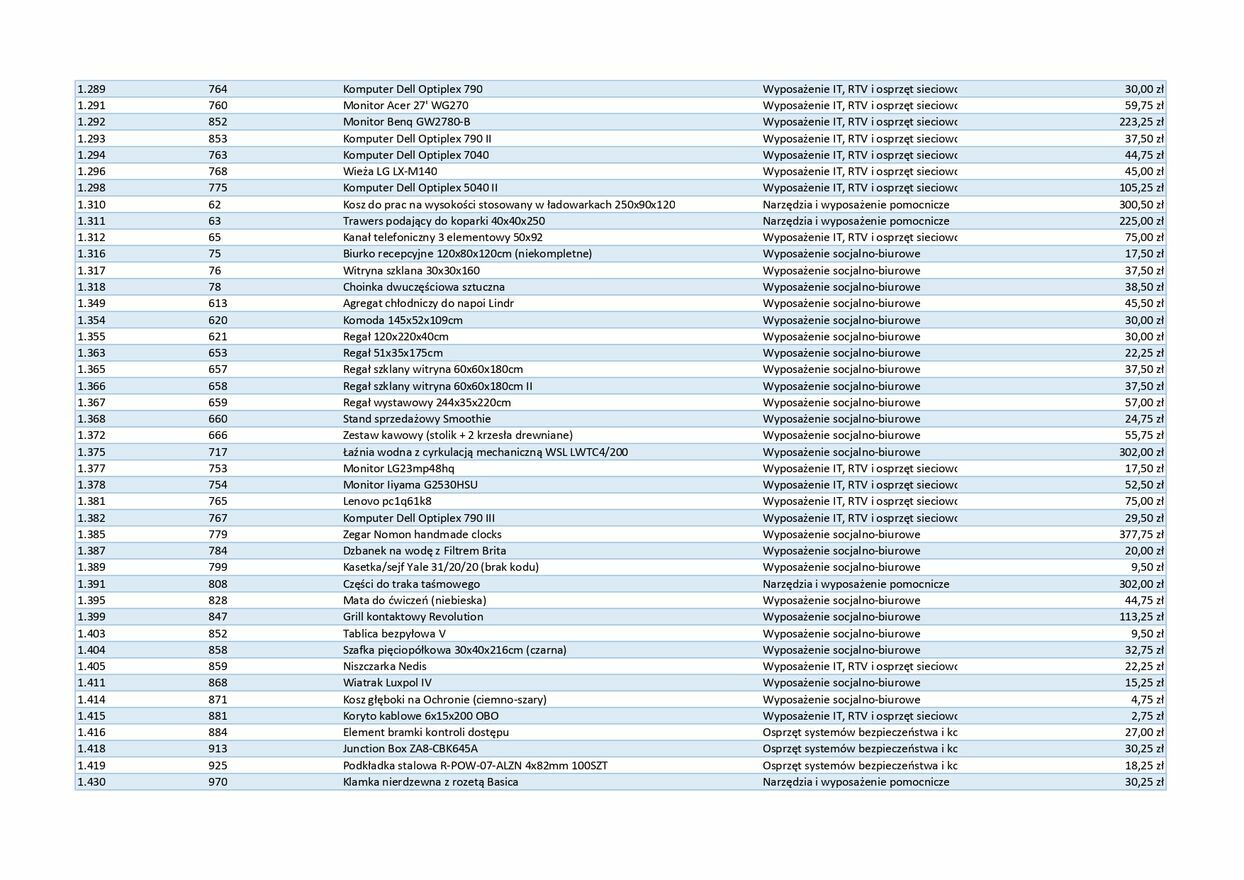 - wyposażenie IT, RTV i osprzęt sieciowy;