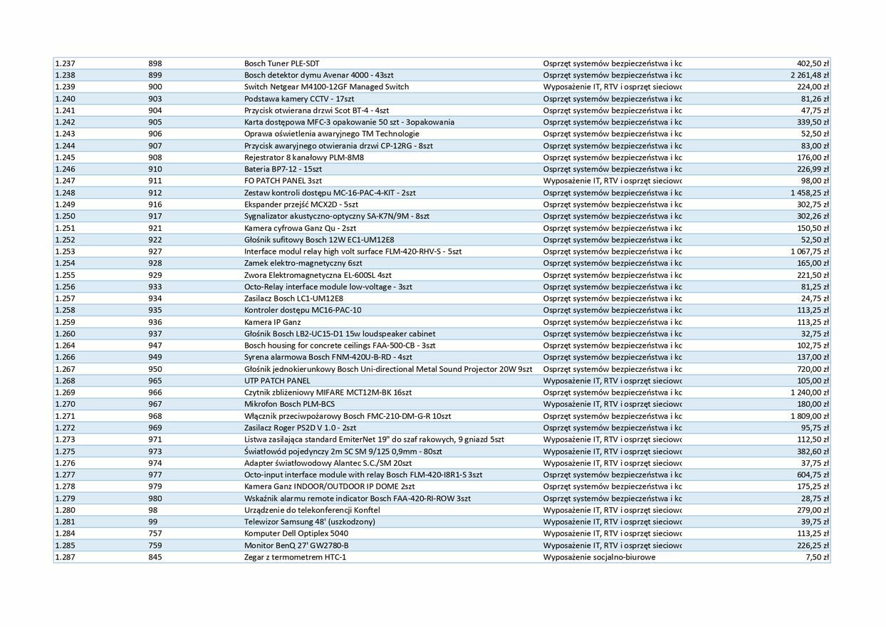 - osprzęt systemów bezpieczeństwa i kontroli dostępu (w tej kategorii tylko nowe produkty).